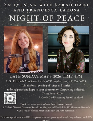All are welcome to join us for a Night of Peace filled with song and storytelling by Sarah Hart and Francesca LaRosa.Images