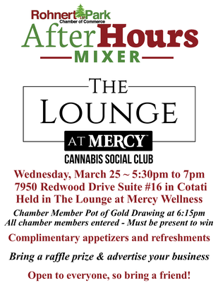 Come join The Lounge at Mercy Wellness and the Rohnert Park Chamber of Commerce for a networking mixer!- Complimentary Appetizers & Refreshments