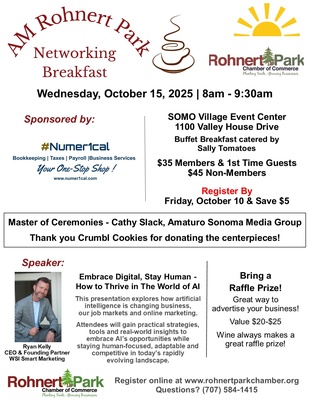 Join us for our October AM Rohnert Park Networking Breakfast sponsored by Numer1cal